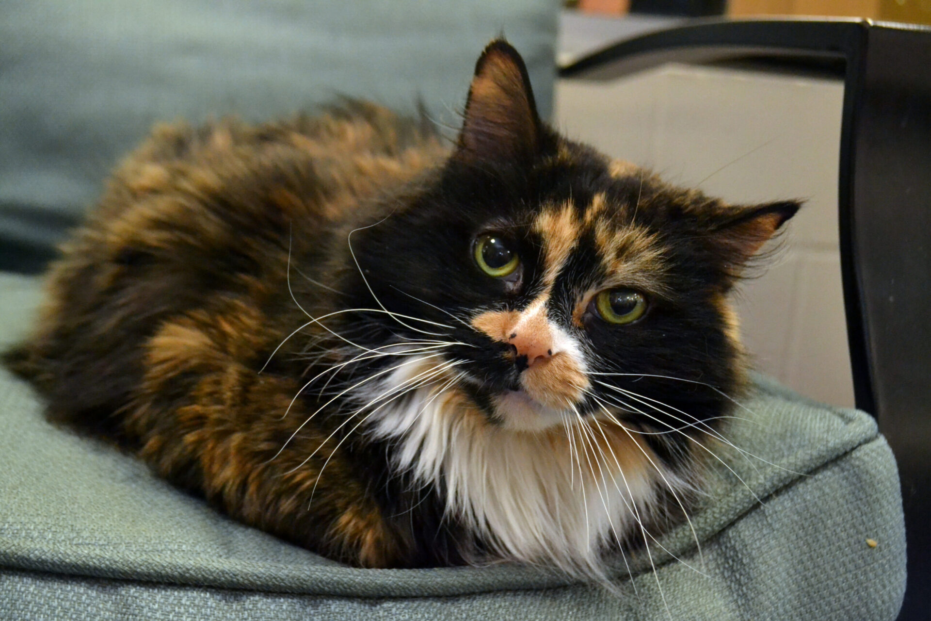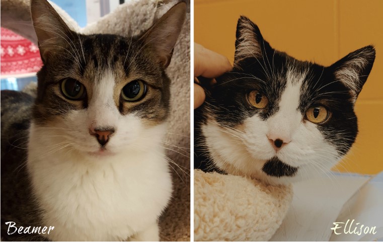 Ellison came to us from another rescue group, a shy girl who wanted nothing to do with humans. Beamer was surrendered to us as a stray and was used to living on his own. After moving into the Community Cat room at the shelter, both nervous kitties immediately found their hiding spots. It was quite evident from that day on, getting them to come out of their comfort zone would be a challenge.