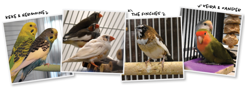 Birds are sociable, intelligent, and can form wonderful bonds with their families. We currently have parakeets, love birds, and finches available for adoption, each one is special in their own unique way. Many people enjoy having birds as pets because of the variety of beautiful colors they come in and the calming little chirping noises they make. Due to their social nature, birds are often best adopted in pairs. Learn more about adopting a bird here.