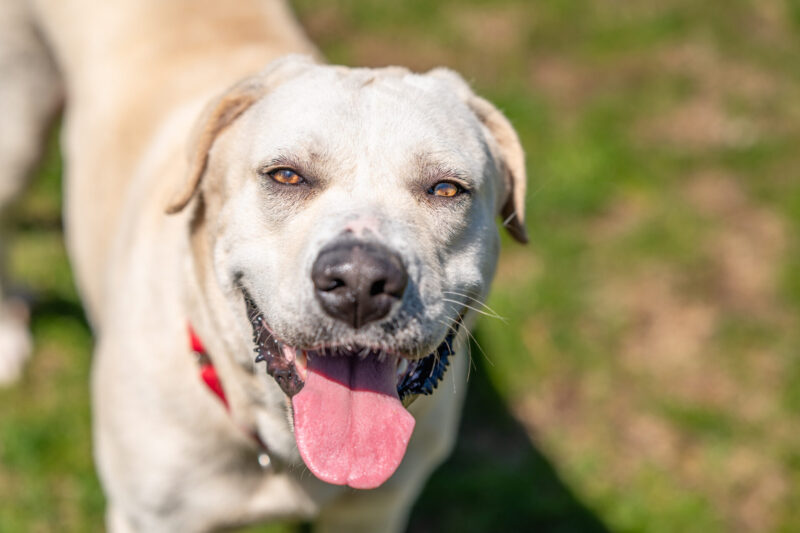 We recently brought MaDukes to an offsite adoption event, and she was a hit! Her highlight of the day? Meeting a couple of toddlers and showering them with kisses. MaDukes adores kids and is very gentle and tolerant when interacting with them. It’s no surprise to anyone who’s spent time with her—MaDukes simply loves every human she meets and is eager to be their friend!