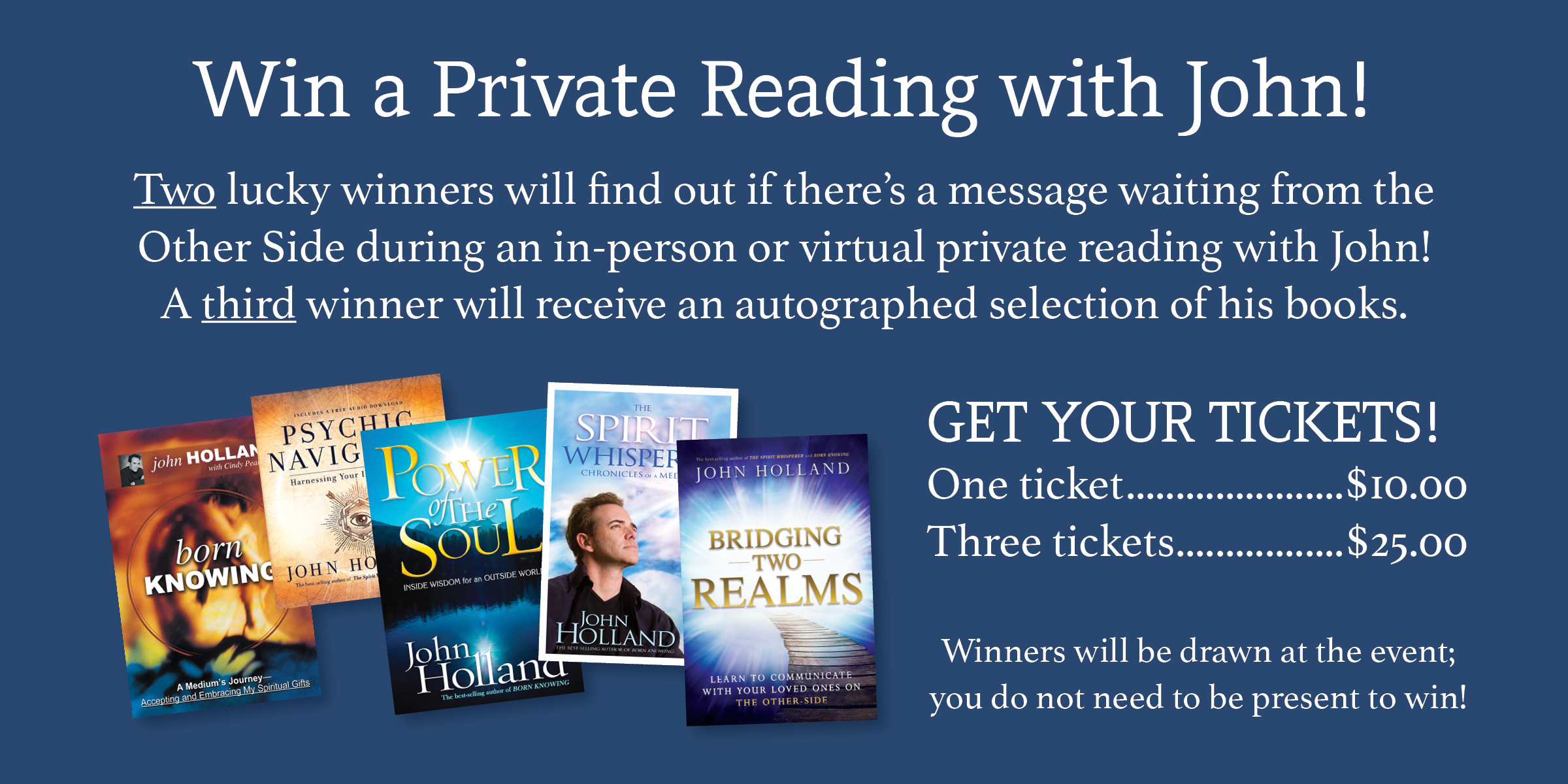 Experience the phenomenon that is psychic mediumship and help save the lives of animals in critical need at the New Hampshire SPCA. World-renowned psychic medium and spiritual teacher John Holland will deliver messages and insights from the Spirit World at this interactive event held on Sunday, February 22, 2026, at the Rockingham Ballroom Event Center in Newmarket, NH. Watch as John reveals wisdom from the other side.