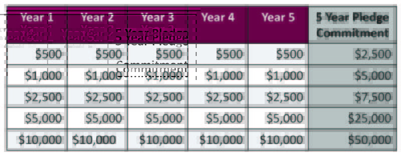Individuals may strongly believe in helping to make our vision a reality, but might be restricted in how much can be given annually. A multi-year pledge allows for the distribution of a larger gift to be given over time. Below are samples of how a multi-year pledge can result in a larger and more impactful contribution to this worthy cause.
