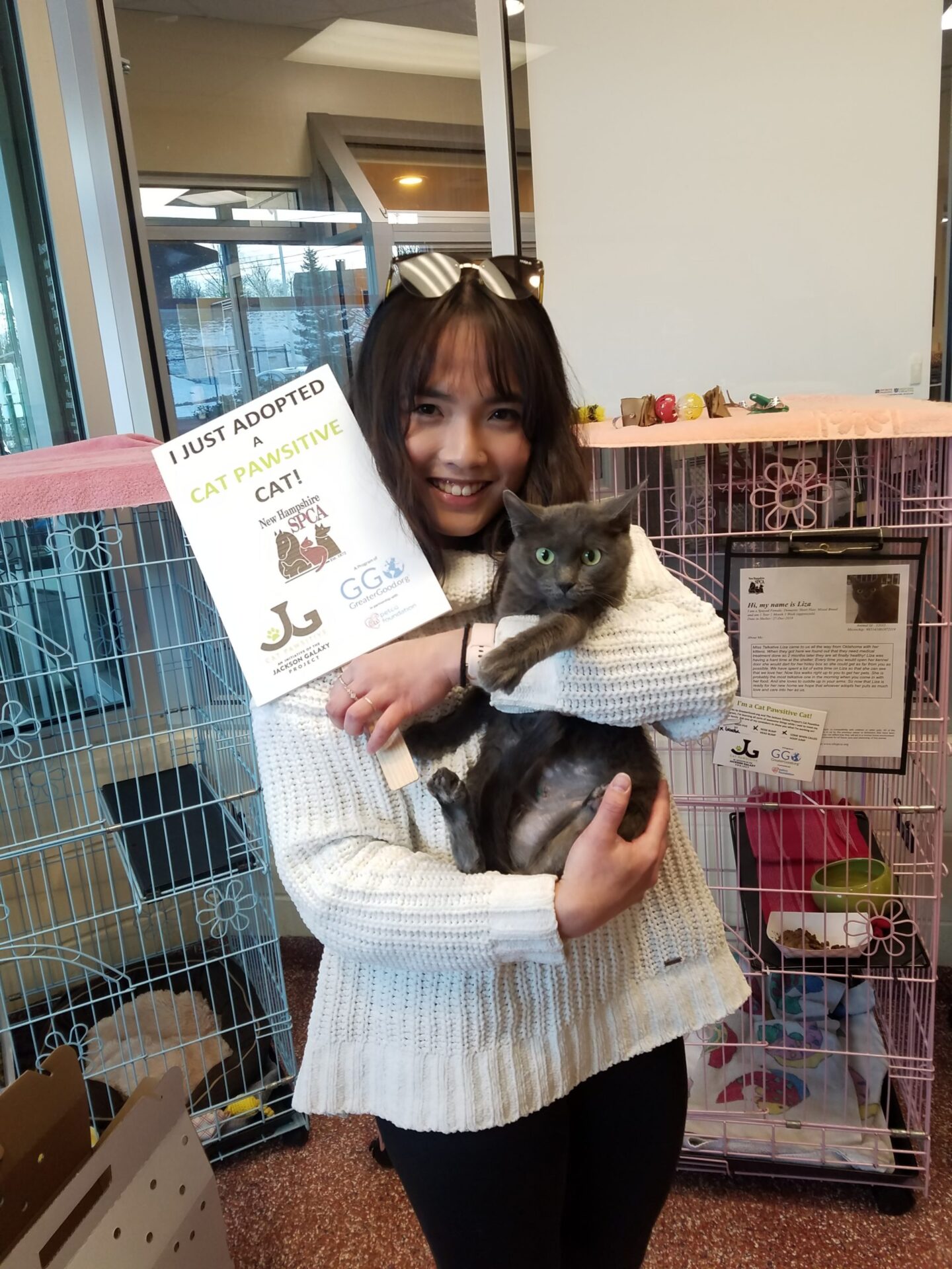 “We are so grateful for being part of Jackson Galaxy’s Cat Positive Program”, said Riann Hadley, Director of Animal Services at the New Hampshire SPCA. “By using reward based positive training, we have seen stressed, shutdown and difficult cats become more confident and interactive. Not only does this program decrease their stress, but dramatically increases their adoptability. It’s so rewarding watching these cats come out of their shell and blossom into wonderful companions.”