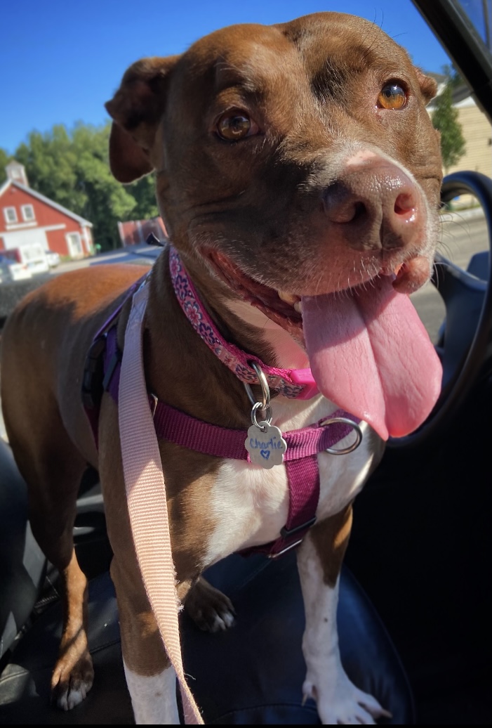 Charlie has a smile that will light up the darkest days, and gives great hugs when she can sense someone really needs one. Charlie will never pass up the chance to go for a car ride, especially if there is a drive-thru treat available. She would be content with a fenced in yard to bask in the mid-day sun, or a life of nature walks and exploring the great outdoors.