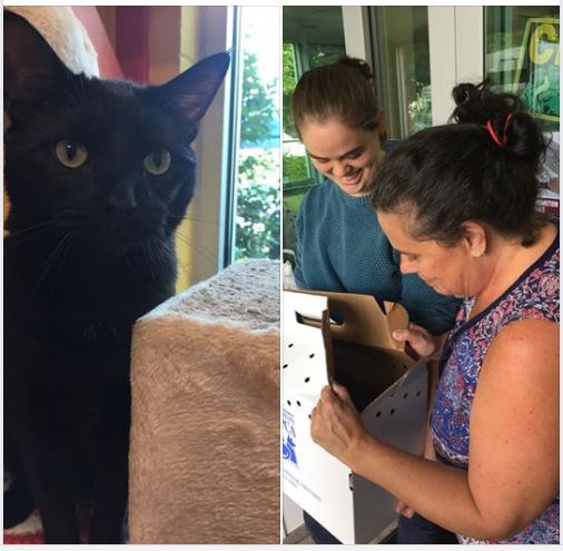 Our very first adoption of the day was Noir, a shy adult black cat. One of our goals with this adoption event was to bring awareness to older animals that often go overlooked, especially when there are dozens of adorable kittens available. We are thrilled that this family chose give a second chance to an older cat that had been waiting a long time for a home. When asked why they chose Noir, they said “Adopting an adult cat makes our hearts proud. Everyone loves kittens, but we really wanted to help an older cat.”