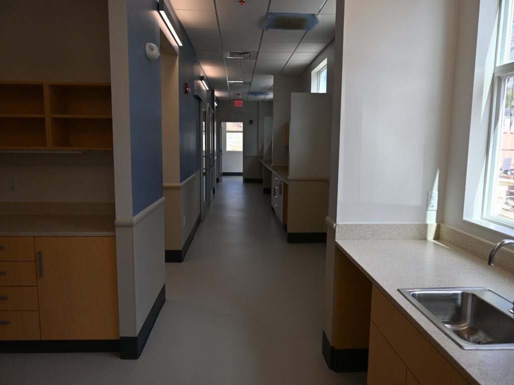 June 17, 2021- While the weather continues to vacillate between Spring and Summer, construction at the NHSPCA carries on. The agency is now thoroughly into Phase two of construction, and renovations on the existing structures are well underway. A group of horses used the new arena for the first time last week to escape the brutal heat, giving them a chance to romp around despite the weather. The inside of our Adoption Center (the AC) has become a giant Plywood wall, creating a small hallway for staff to walk from the front of the building to the back as they work. At the same time, construction crews hammer away on the other side. Our exteriors are getting closer to completion with roadways and parking lots torn up, new trenches, and curbing being created. Parking is even more limited than usual, and it is tricky for even the staff to navigate.