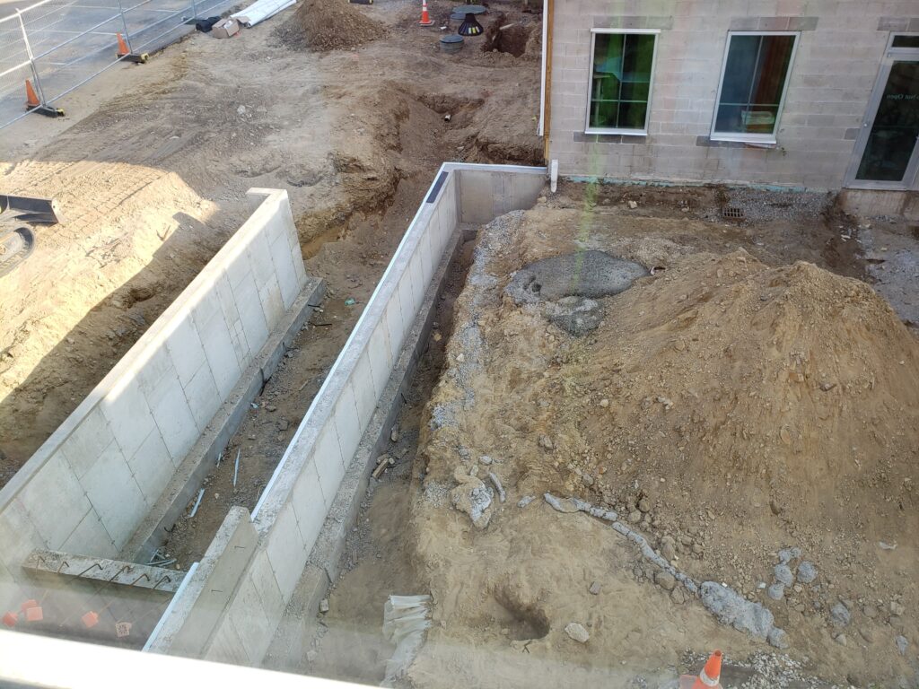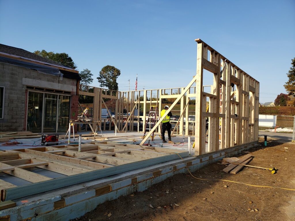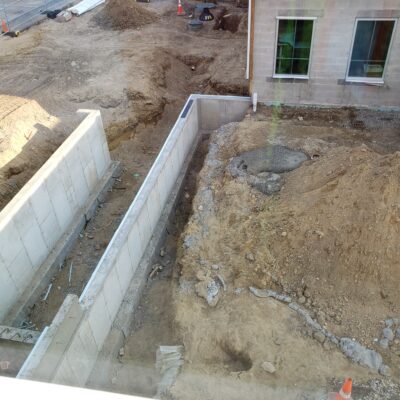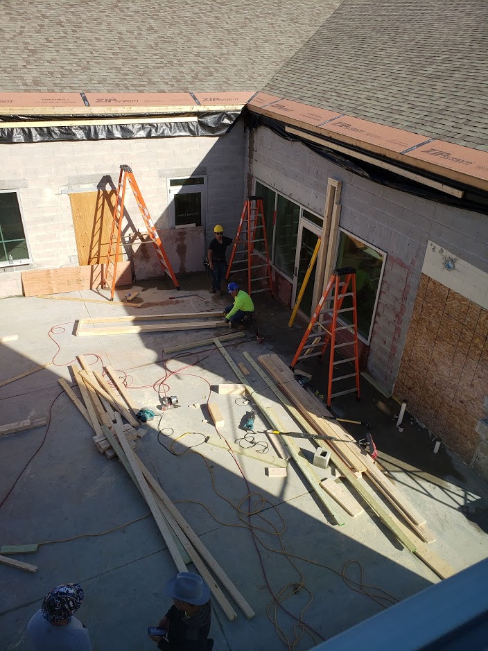 October 23, 2020: Work continues, and with each passing day, progress makes the grounds look different. The roofing has been replaced on existing structures, and foundations are being laid for new ones. The new medical clinic’s exterior walls are already up, and the multi-purpose classroom is not far behind. The mountains of earth behind the property have begun to be spread out, and the rain gardens are beginning to take shape.