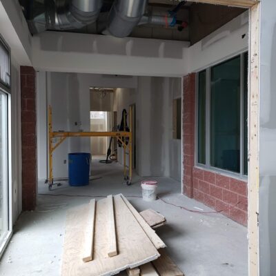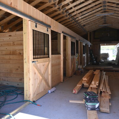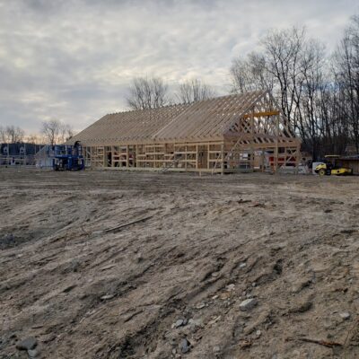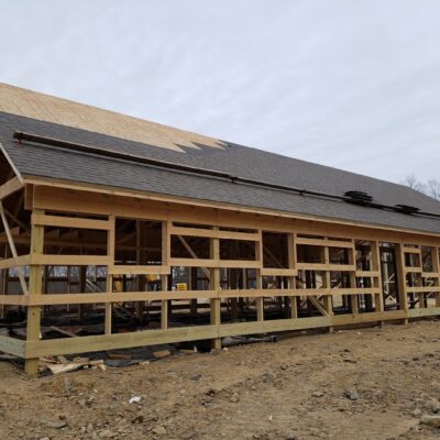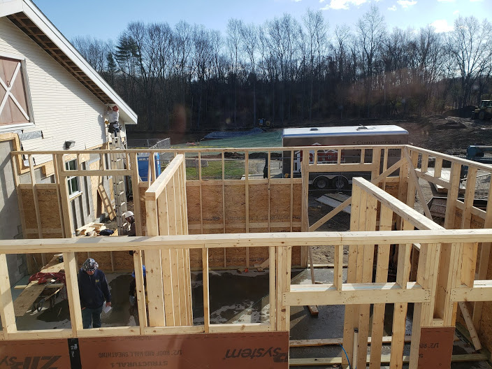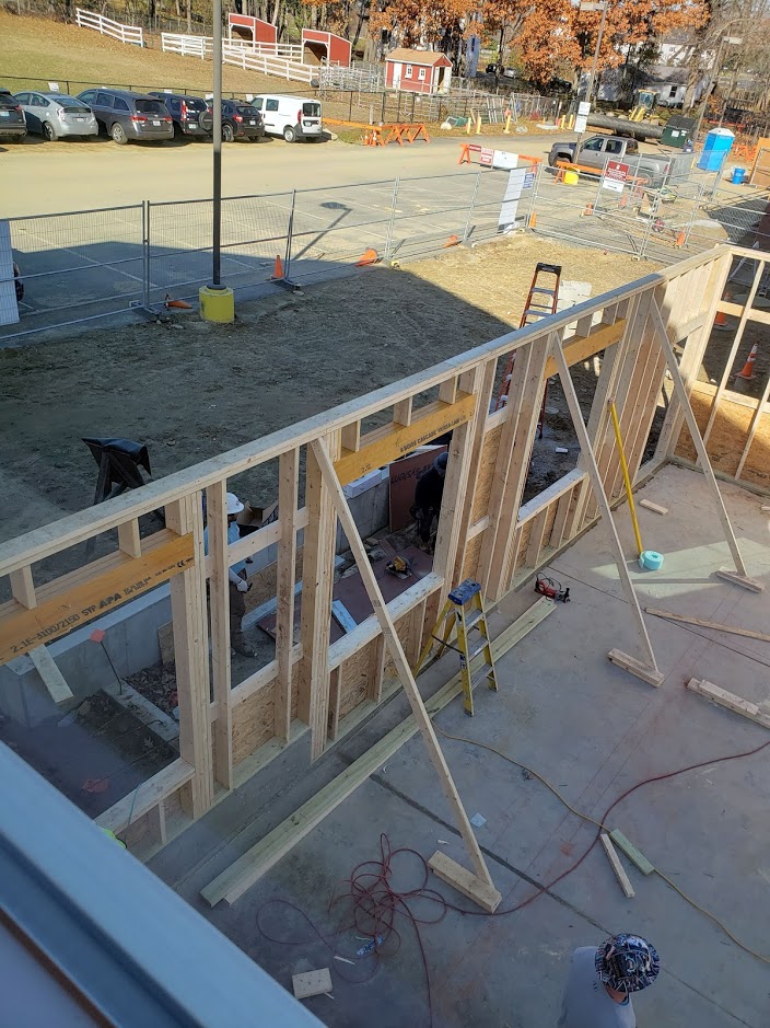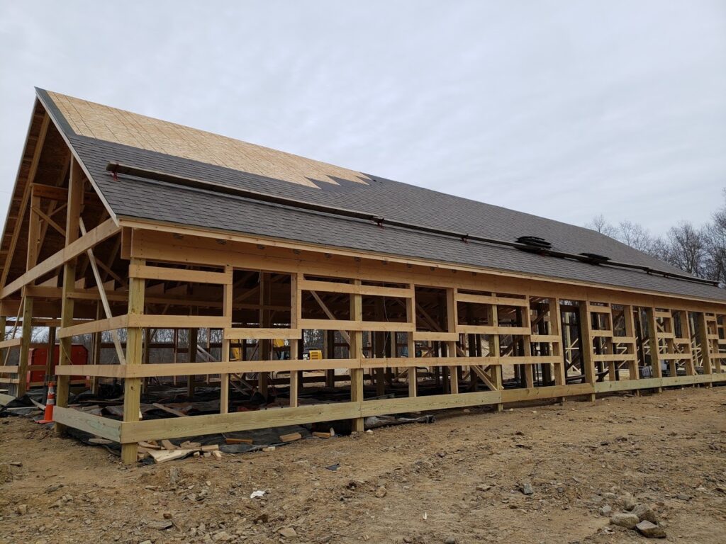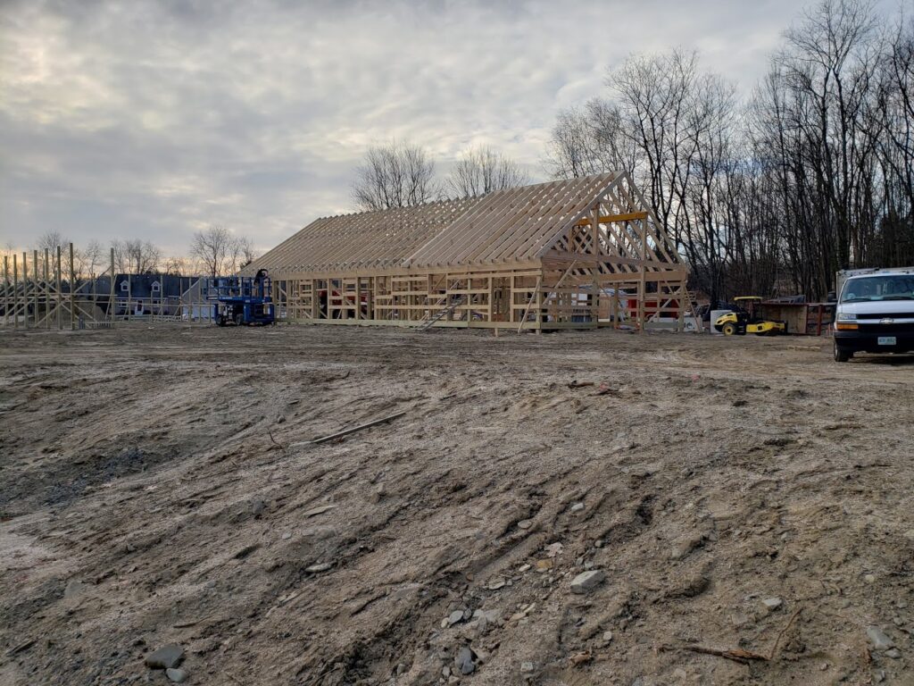 January 27, 2021As we close the doors on the first month of this new year, we are literally building new doors at the shelterThe warm weather and mild days have allowed the construction crews to forge ahead, and so much has been accomplished. Spaces that only a few weeks ago looked like open frames are now dry-walled, mudded and in some areas even painted. Wiring and ductwork progress and finishing work will soon begin. Visually the New Barn may stand out the most, however. In mere weeks posts have gone in, joists lifted, and a roof has gone on. It will not be long before horses can call this new space home.