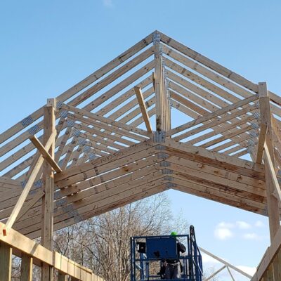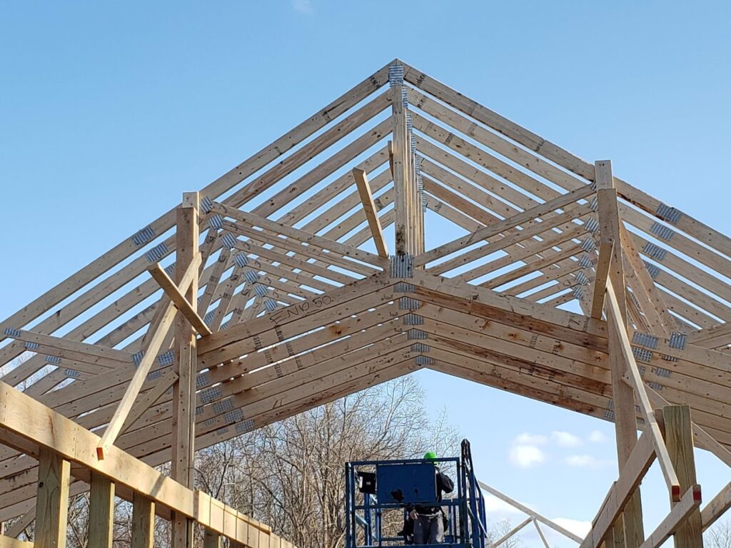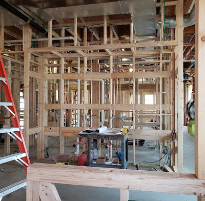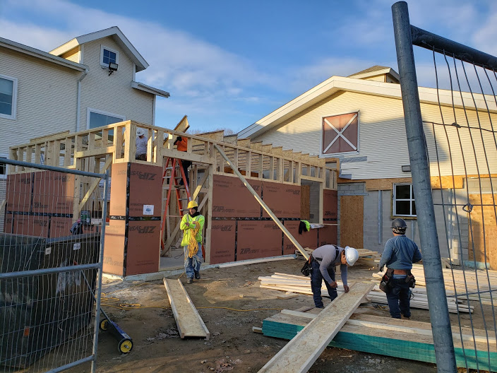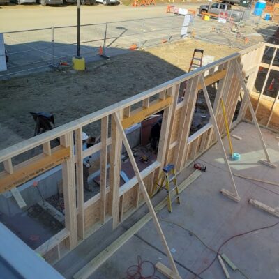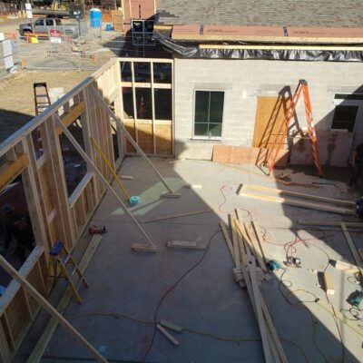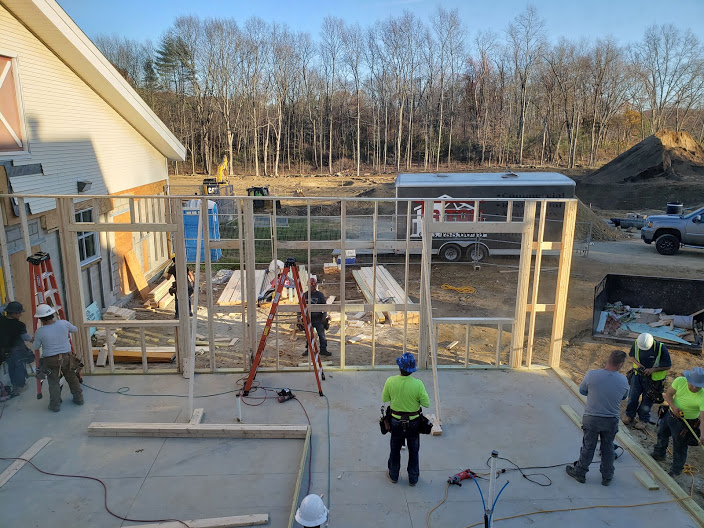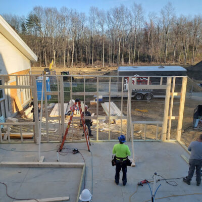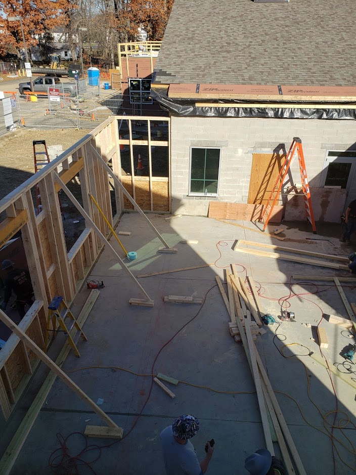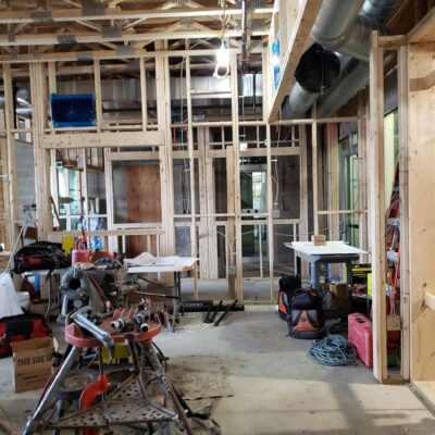 January 27, 2021As we close the doors on the first month of this new year, we are literally building new doors at the shelterThe warm weather and mild days have allowed the construction crews to forge ahead, and so much has been accomplished. Spaces that only a few weeks ago looked like open frames are now dry-walled, mudded and in some areas even painted. Wiring and ductwork progress and finishing work will soon begin. Visually the New Barn may stand out the most, however. In mere weeks posts have gone in, joists lifted, and a roof has gone on. It will not be long before horses can call this new space home.