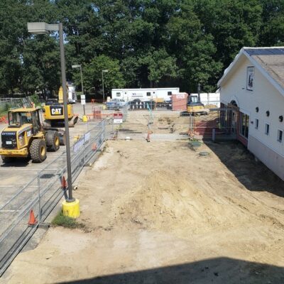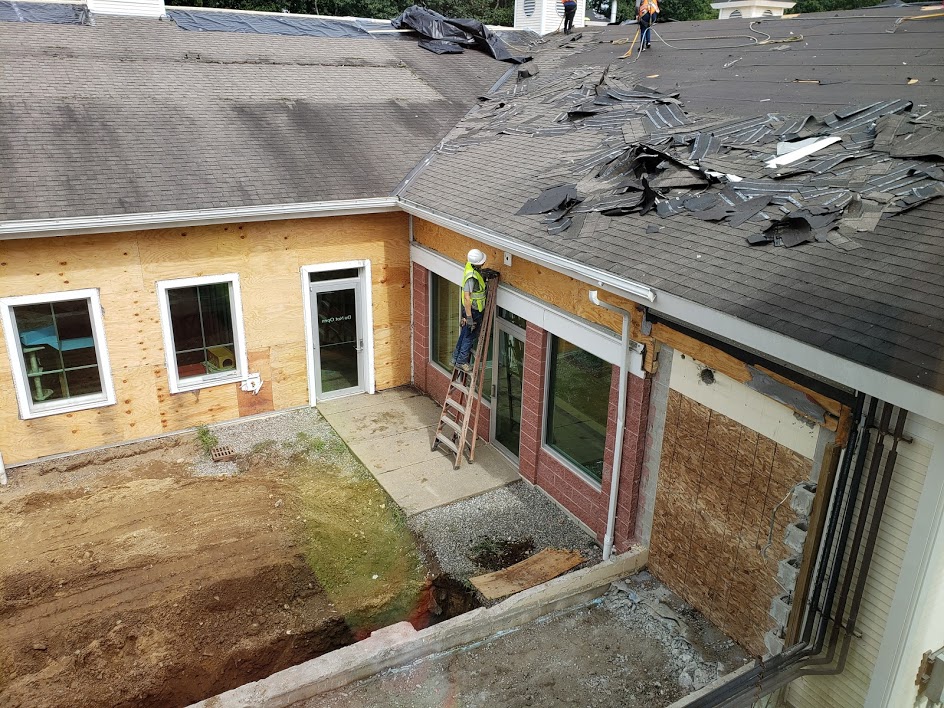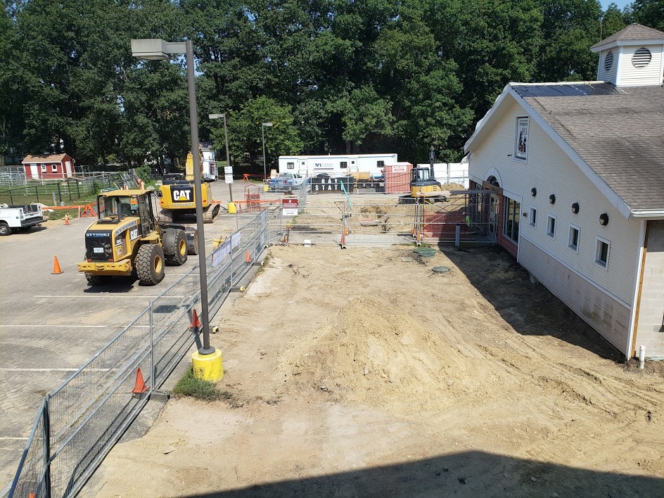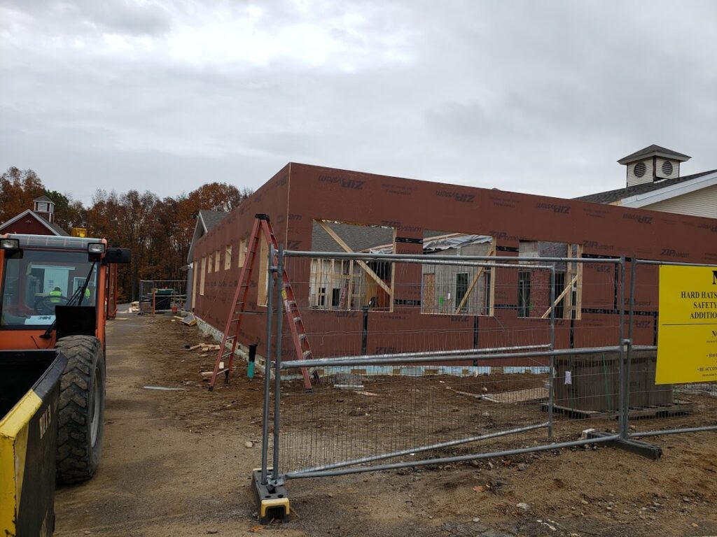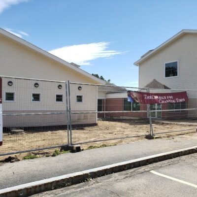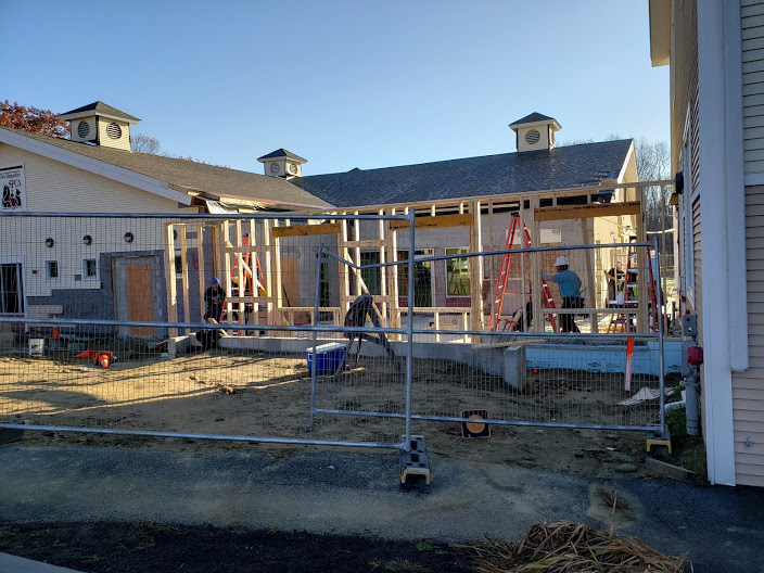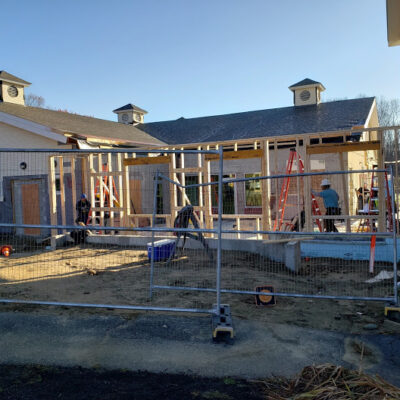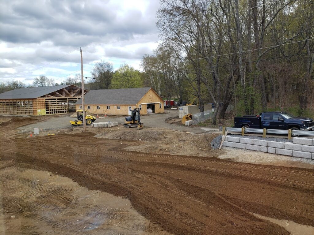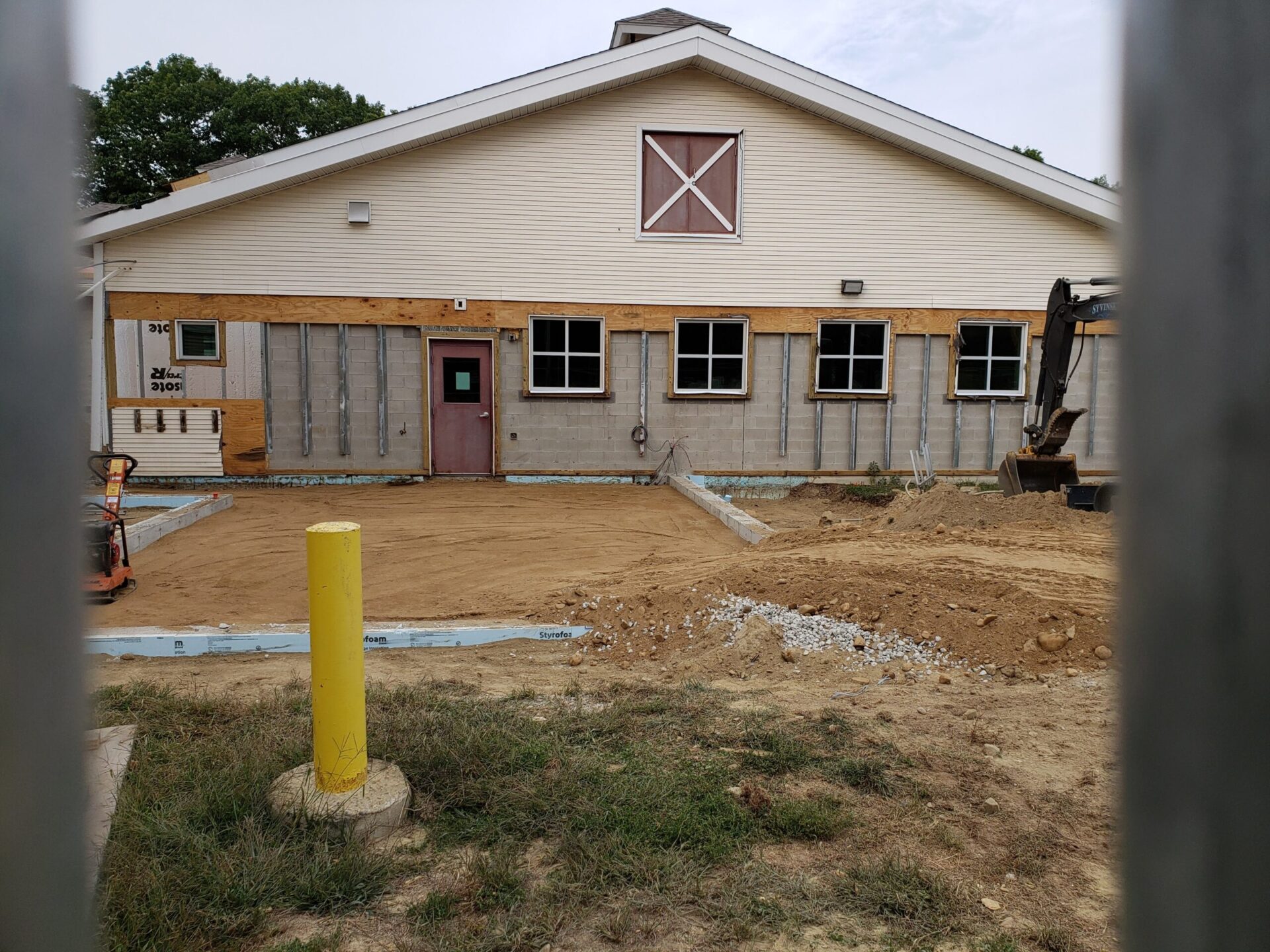 September 17, 2020: With a new era comes a new look, and the grounds of the New Hampshire SPCA seem to look different with each passing day. After a socially distanced groundbreaking in August, the construction vehicles immediately got to work. It has been nonstop ever since. Landscaping in the front of the buildings has been removed and the “link” connections between the adoption center and Learning center has also come down to allow for the building of a second classroom. Shingling on the roofs has been removed and replaced, and the back horse-paddocks leveled to begin foundation work for the new arena.