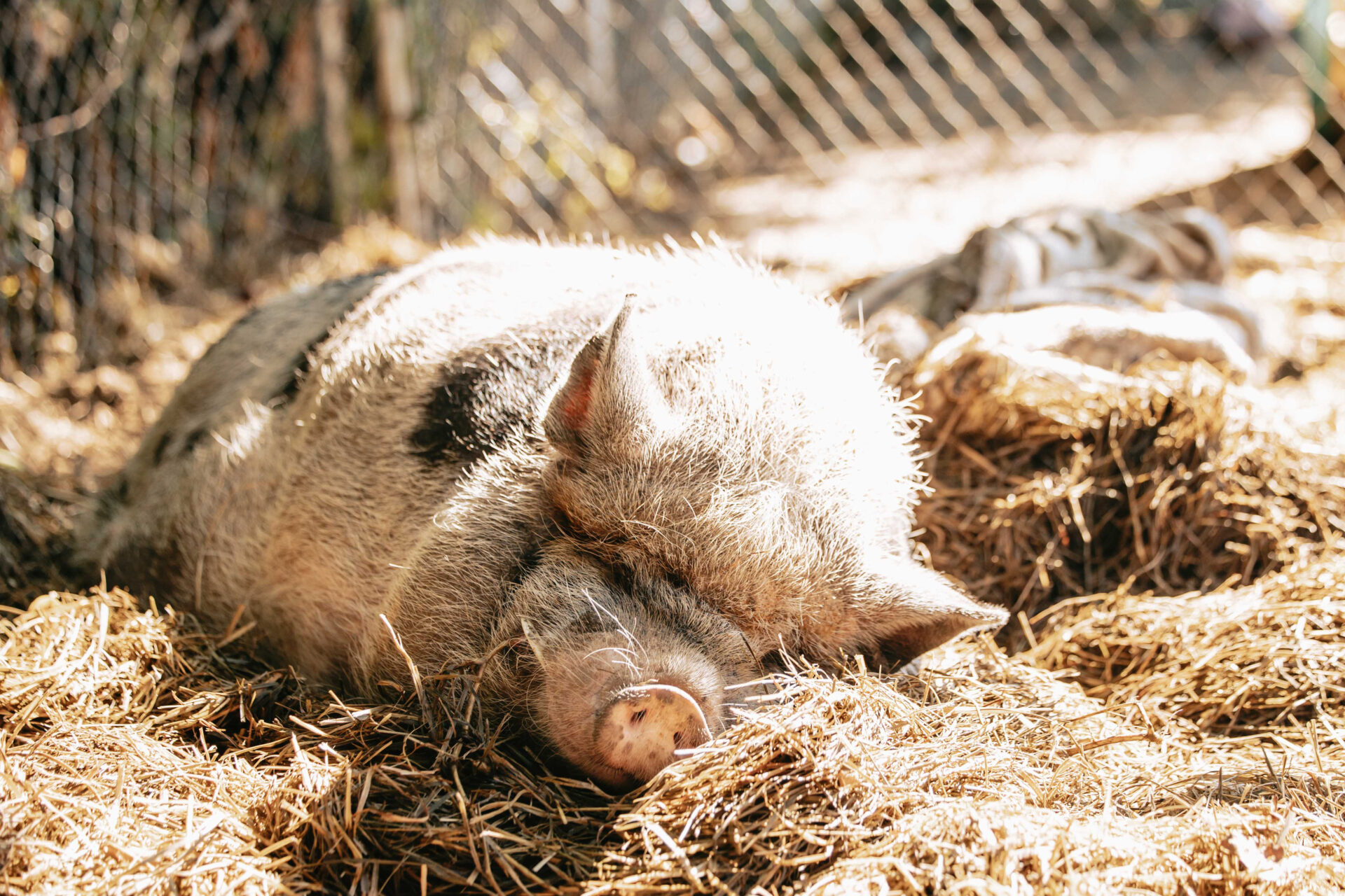 Four-year-old potbelly pig Dude came to us in rough shape. His hooves and tusks had grown so long that moving around became a challenge. To make matters worse, he was also severely overweight, which further restricted his movement and added stress to his joints.