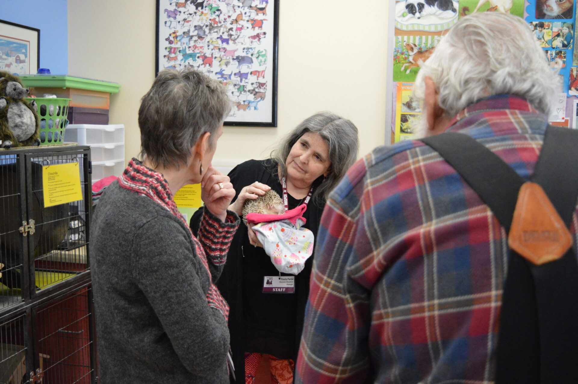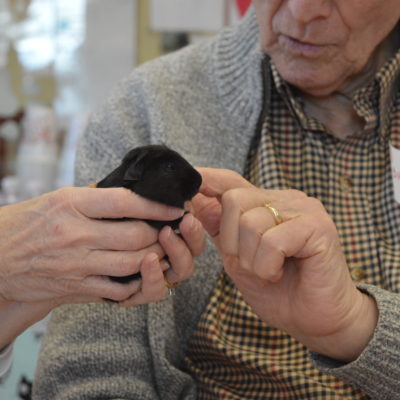 As animal lovers, we can anecdotally say that our pets improve our sense of wellbeing and make us feel happier. Research supports this, indicating that interaction with animals can offer excellent therapeutic results for older adults and those living with Alzheimer’s or dementia. Spending time with animals in a calm and safe environment could improve mood and decrease anxiety and has even been shown to lower blood pressure. Guests visiting the Café were treated to introductions with a variety of charming creatures, including a curious ferret, a roly-poly hedgehog, a fuzzy chinchilla, a bright bunch of finches, and a friendly fluffy pup, all inspiring smiles, questions and conversation. Cheerful music played as SPCA staff and two wonderful volunteers who work in memory care helped guests engage, participate and have fun! By all accounts, everyone enjoyed themselves and we look forward to opening our doors for another Café on Thursday, March 14!