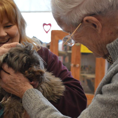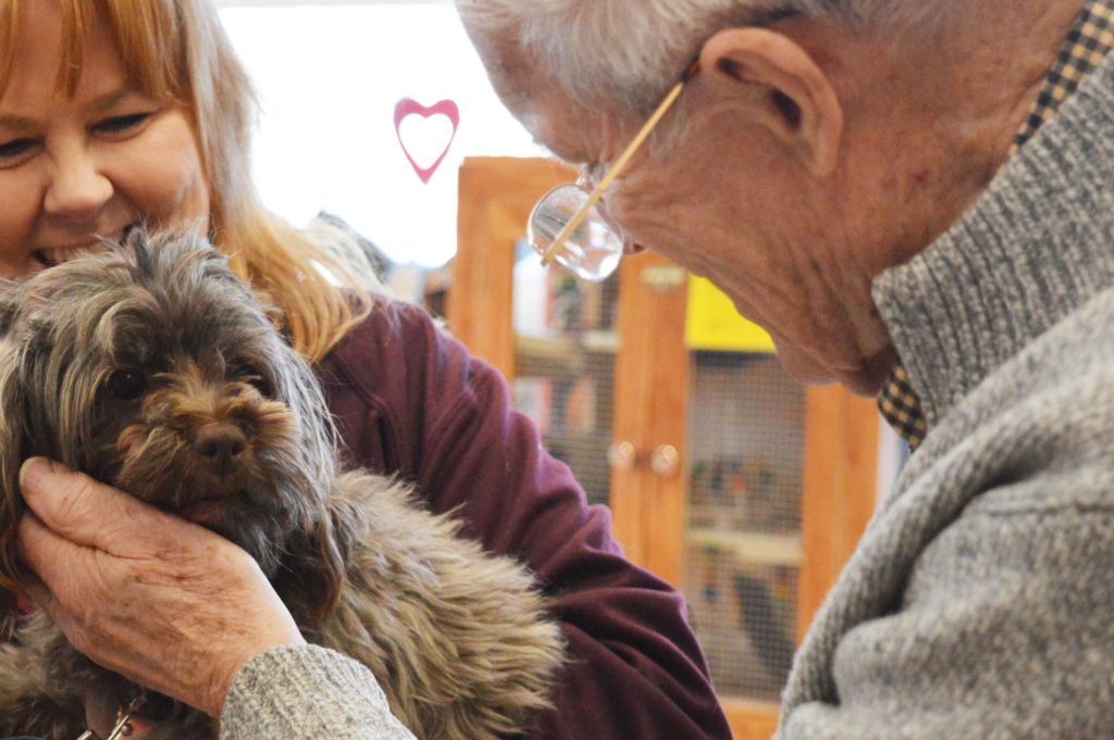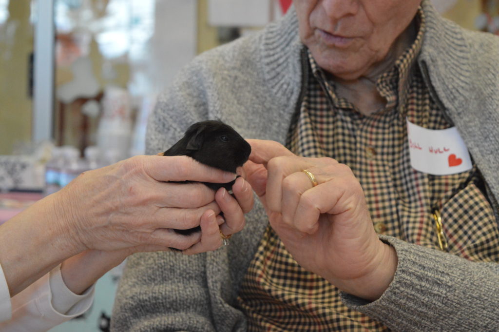 It was a lovely Valentine’s Day indeed here at the New Hampshire SPCA! On Thursday, February 14, we welcomed members of the community to our Humane Education Classroom as part of our first ever Alzheimer’s Café. Guests joined us for a couple of hours on a sunny afternoon to enjoy refreshments, socialize with others and meet our adorable classroom animals as well as one very friendly doggie!