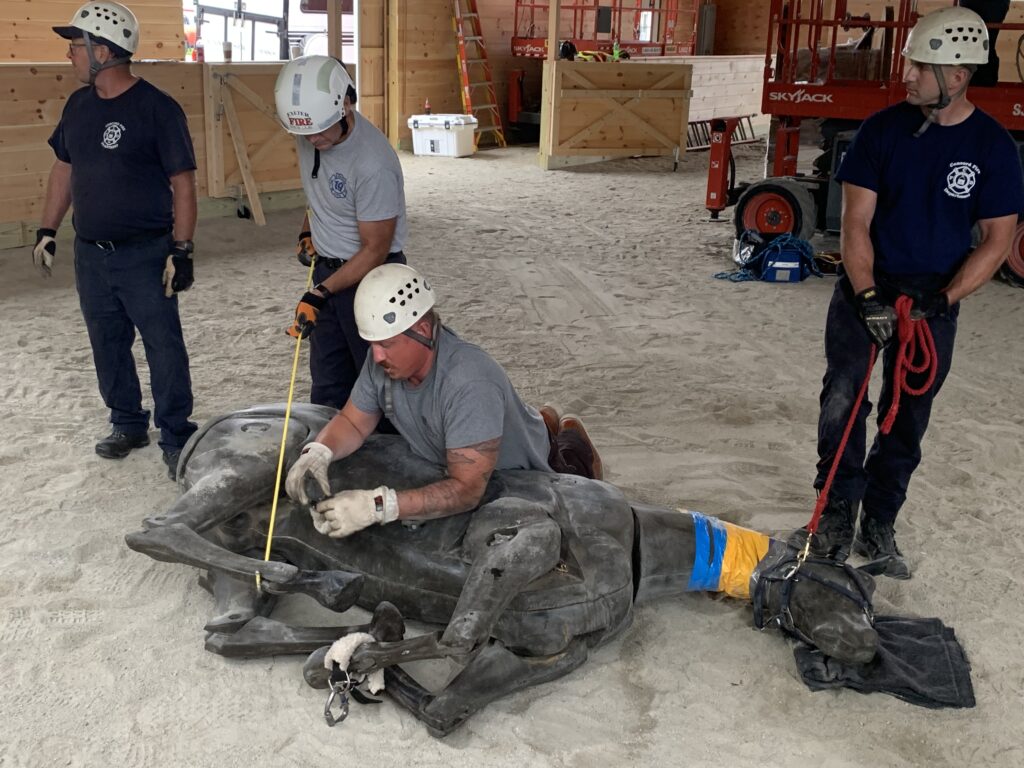 Patriot Equine Technical Rescue is a registered 501(c)(3) nonprofit which provides and utilizes specialized training and equipment to assist veterinarians and public safety officials with the technical rescue of horses in distress due to entrapment, illness, or injury. Horses are fragile and subject to potentially deadly medical complications from prolonged recumbency or entrapments. The equipment and training can mean all the difference in keeping rescuers safe and in providing the horse (or other large animal) with every opportunity for a successful outcome. Because this training equipment is purpose designed, it can accomplish the job much faster and safer than other lay methods.