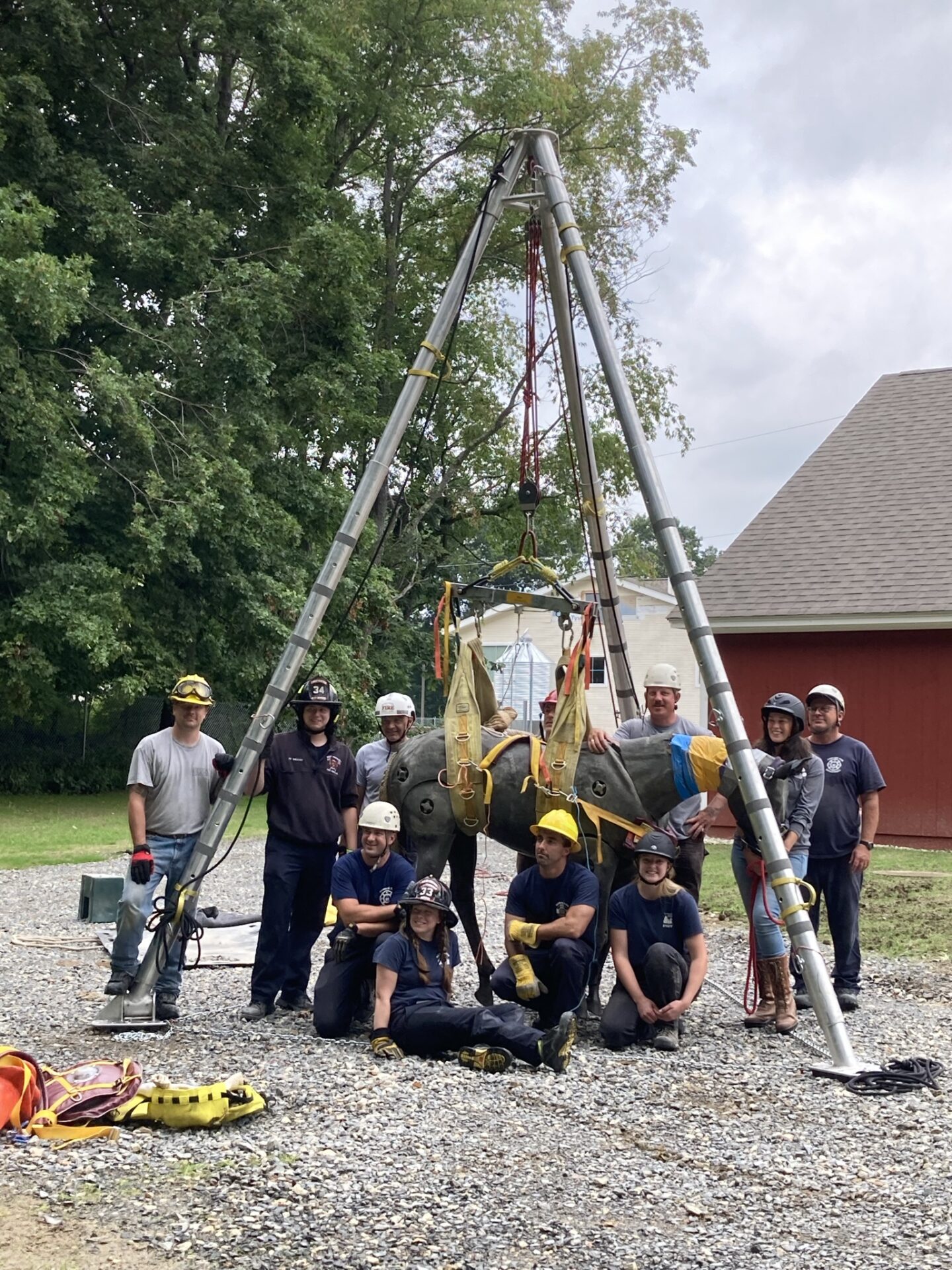 The New Hampshire SPCA recently held a full day of specialized hands-on training workshop for first responders to be able to help large animals in distress. Patriot Equine Technical Rescue trained first responders and NHSPCA equine staff how to rescue animals safely during emergencies. This workshop welcomed first responders from 12 agencies around New England.