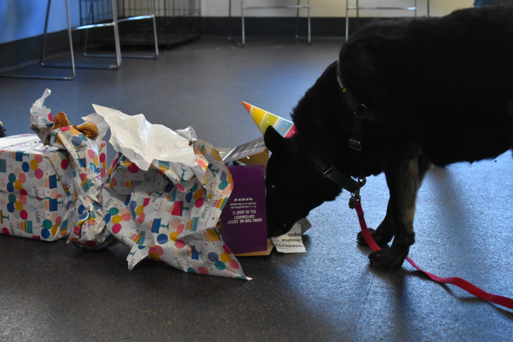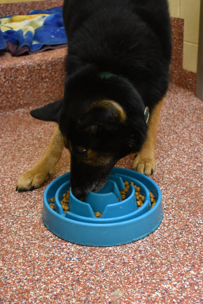 Enrichment programs are designed to allow animals to express normal behaviors while in a shelter. Besides reducing stress, enrichment enhances our animals’ adoptability. Still, animal shelters are not intended for long-term stays. Animals benefit from enrichment, to be sure. But the longer an animal stays in a shelter, the more prone (s)he is to experiencing boredom, loneliness and anxiety. That’s why finding good homes as soon as possible is key.