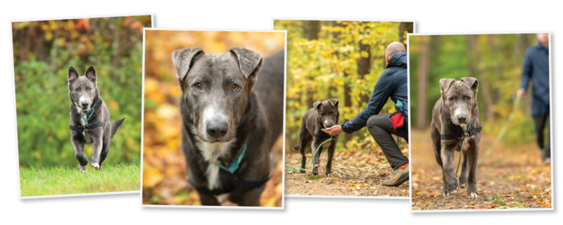 NOVEMBER 6, 2024 — Are you looking for an adventure buddy? Marlo, 6, is still here and waiting for someone to fall in love with his awkward charm. To give this boy a break from his kennel during his long stay, our incredible volunteers have been taking him to hike the trails at Stratham Hill Park.