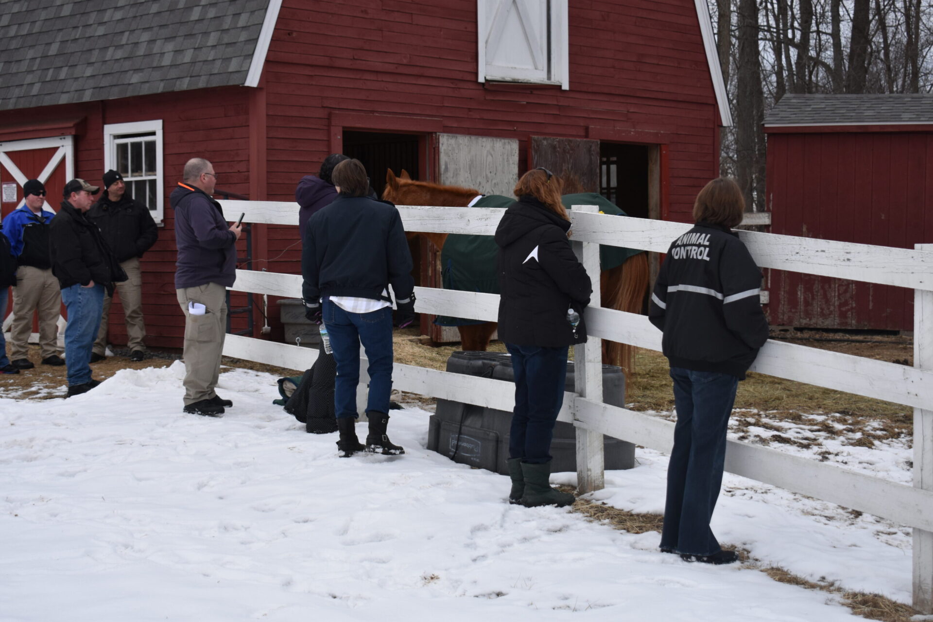 Recently, the New Hampshire SPCA Field Services Department, in cooperation with the Animal Control Officers Association of New Hampshire, hosted a training event for Animal Control Officers (ACOs) to become more familiar with handling, and capturing loose horses. ACOs from all across the stated attended this afternoon course, and soaked up valuable knowledge on equine handling and safe capture. ACOs first learned the basics of understanding horse/ farm animal body language , capture and control, then practiced these methods with some of the shelters horses.