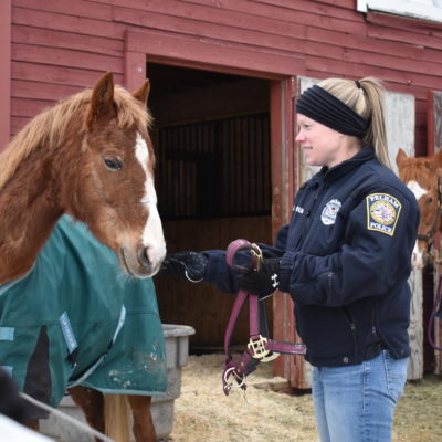 NHSPCA Farm Animal Manager, Carrie Fyfe jumped at the opportunity to teach the handling workshop. She explains, “We want ACOs to feel prepared and confident when entering a situation where a loose large animal (horse, cow, goat or pig) is at risk of harm or in a position where it could cause harm to others. For those of us who may regularly come into close contact with frightened large animals like horses, it is essential to understand the behavior of a fearful horse and to have a few tricks up our sleeves to keep ourselves and the animal safe. Brushing up on safe handling techniques and methods of minimizing stress while attempting to contain a loose horse will not only give handlers confidence to de-escalate the situation, but will also help ensure the safety and wellbeing of the animal.”