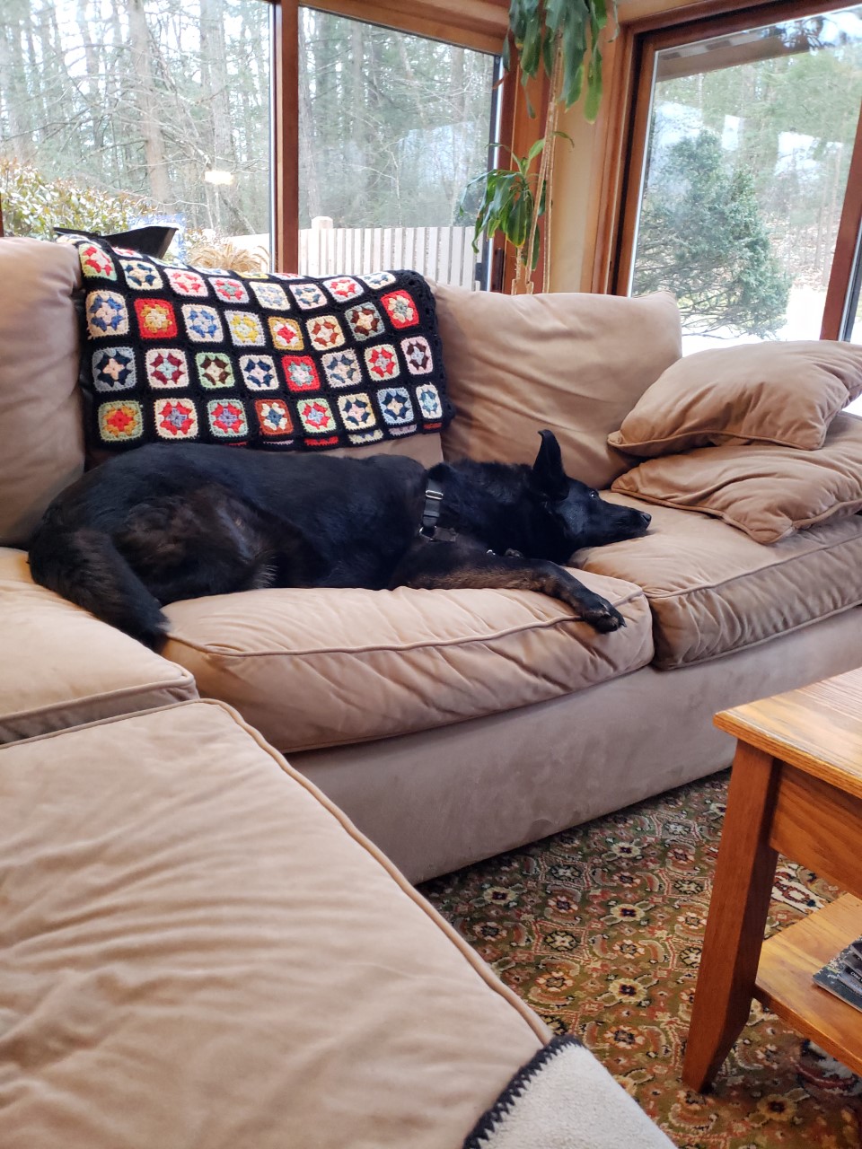 Bebe, a 7 year old German Shepherd, is a lovely girl that is all prepped for a good home. In her foster home, she’s mellow and sweet. This smart girl is completely housebroken and crate trained. She loves going on walks and enjoys long hikes in the woods. She has a loyal heart and is devoted and protective of her people. She can be reactive to strangers, but is working on that reactivity with verbal and clicker training. It would be helpful for her to continue such training in her new home. A quiet, adults only home would be best. Bebe likes other dogs, but may chase cats. Any potential cat roommates would need to be mellow and dog savvy. Like all the animals available for adoption at the New Hampshire SPCA, BeBe is spayed, micro-chipped and up to date on all her shots.