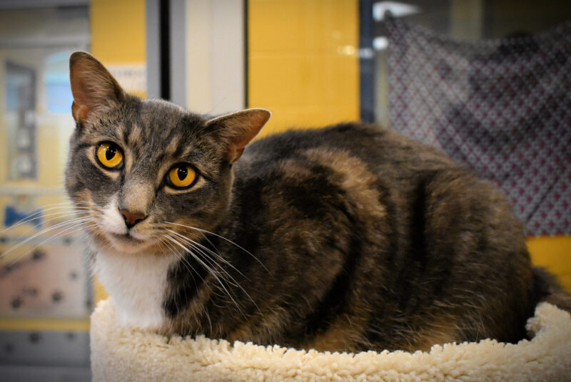 Butters will cozy up in his bed or box and do as cats do, the minute he knows you want to pet him…he is ready! Butters is an incredibly affectionate cat who seeks as much attention and love as you can give. He has beautiful golden eyes and a golden personality. This adorable and lovable 4-year-old male cat is ready for his new home, his new place to sun himself by a window, and his new person to smother with love. Click the button below for more information on adopting Buttons.