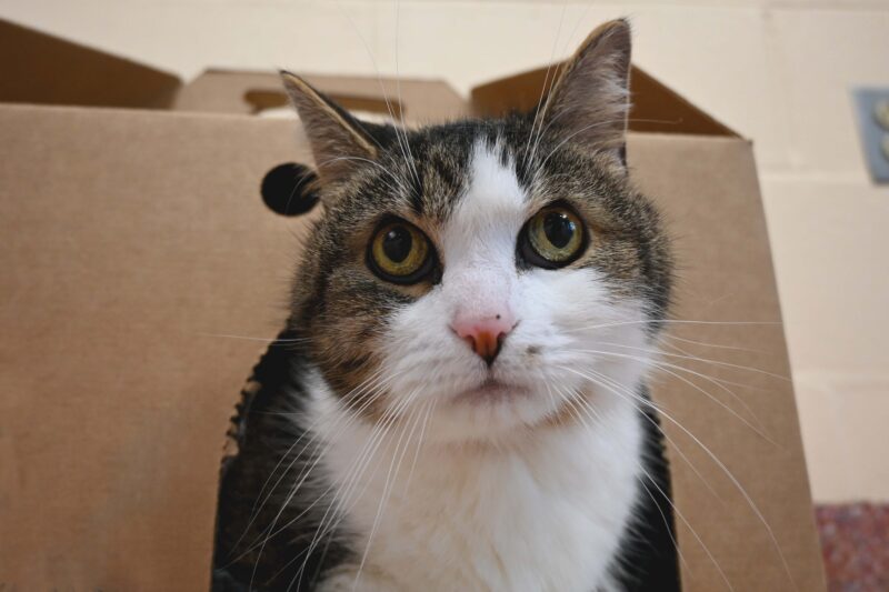 She had an upset tummy for days after arriving, but she’s feeling much better. She’s currently staying in one of our quieter offices where she seems more comfortable. You can tell that Nana has been well loved in her life by the way she’s happy to curl up on your lap. She’s almost always purring. She’s chatty, but also enjoys her alone time. Nana has successfully lived with other cats and dogs. Do you have room in your house and heart for a sweet older girl looking for a home to live out her golden years? Please email info@nhspca.org. Like all the animals available for adoption at the New Hampshire SPCA, Nana is spayed, micro-chipped and up to date on all her shots.