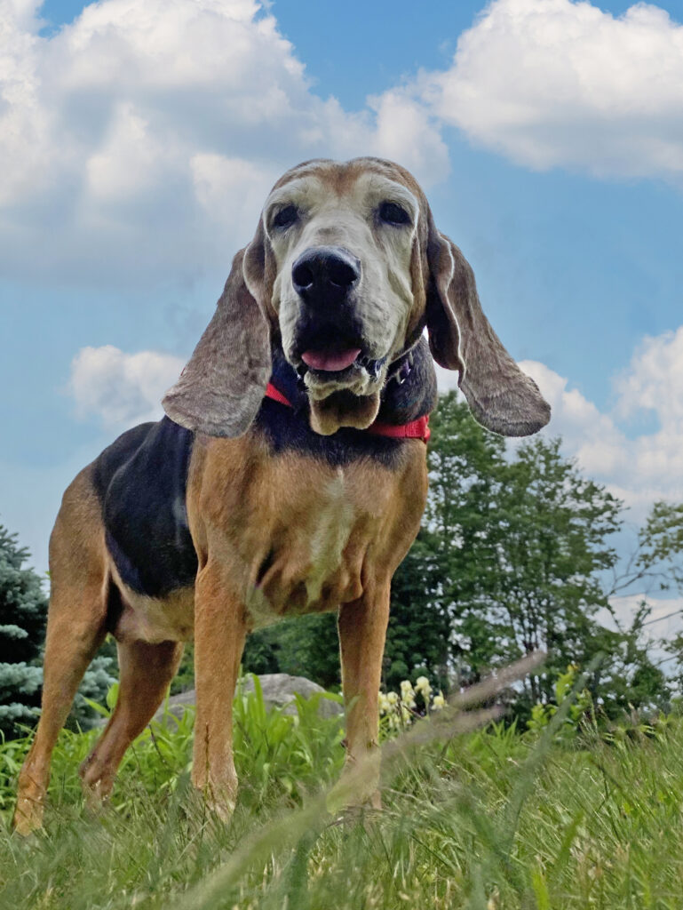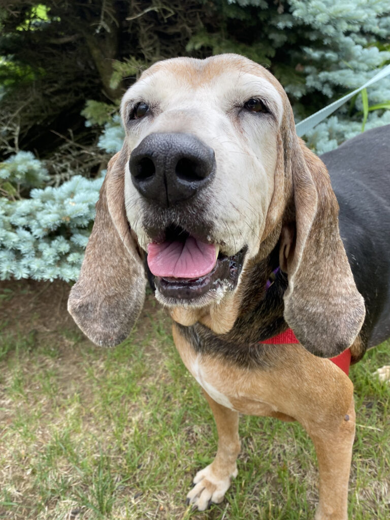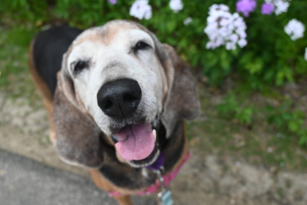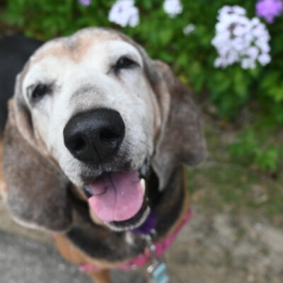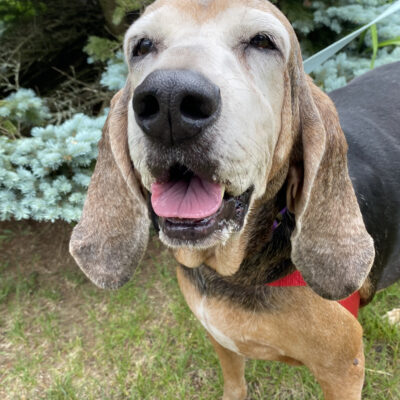 Sleuie enjoys going for walks and uses the time to get lots of sniffs in. She’s a strong girl and still has plenty of pep in her step. In true hound fashion, she is very aware of what’s going on around her and will let out a big “awooo” when something really grabs her attention. It’s pretty perfect.