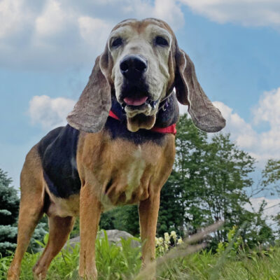 Sleuie is a 10-year-old hound, and we often wonder if she has ever met a person she didn’t like. She has been with us for a month now and during that time, she has befriended every single person she has encountered. Sleuie is the type of girl that makes fast friends with everyone — especially if they bring along a cheese stick to share with her.