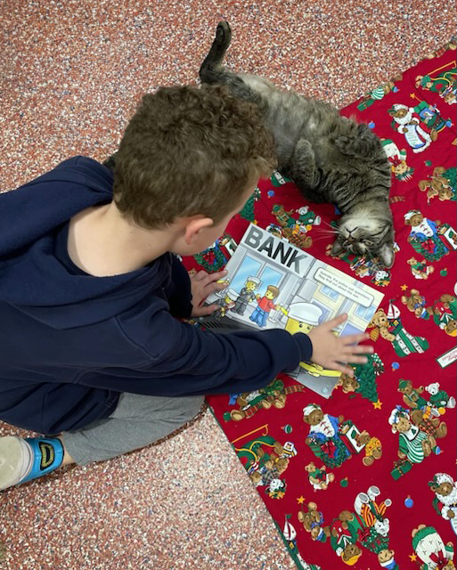 Bring or borrow a book and read to shelter animals. Research has shown that reading to animals has a positive impact on both the animals and the people who interact with them. It increases both reading proficiency and confidence in children. It also socializes the animals and helps them get adopted. Reading with animals is a win win for everyone!