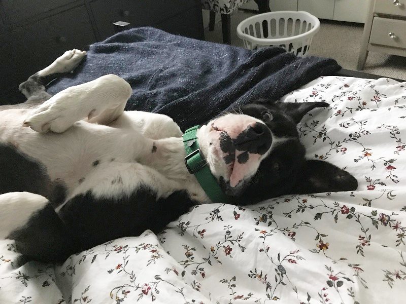 It took some time, but gently and carefully our medical team nursed him back to health. He was given medicinal baths to help soothe his tender skin, a specialized diet, and medications to help him heal. Most importantly, his interactions with humans were filled with love and joy. Volunteers loved to take him out into the pen to play, where he’d happily chase tennis balls. You’d smile if you saw the way he’d bound after the ball, all gangling legs and floppy ears. He’d drop the ball near your feet with an excited woof, a doggy smile, and hop from paw to paw until you threw it again.