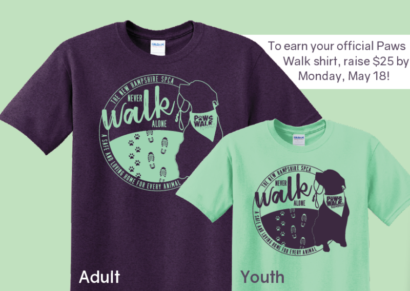 Paws Walk is the New Hampshire SPCA’s largest grassroots fundraiser and is critical to their life-saving work. This year’s switch to a virtual model involves reimagining how and where the event will take place, but the goal remains the same: to save animal lives with each step. Participants can register online and fundraise from the safety of home. As an incentive, they’ll be rewarded with prizes as they reach specific fundraising goals. To earn the much coveted Paws Walk Reimagined T-Shirt, participants need to fundraise $25 by Monday, May 18th or purchase one with their registration.