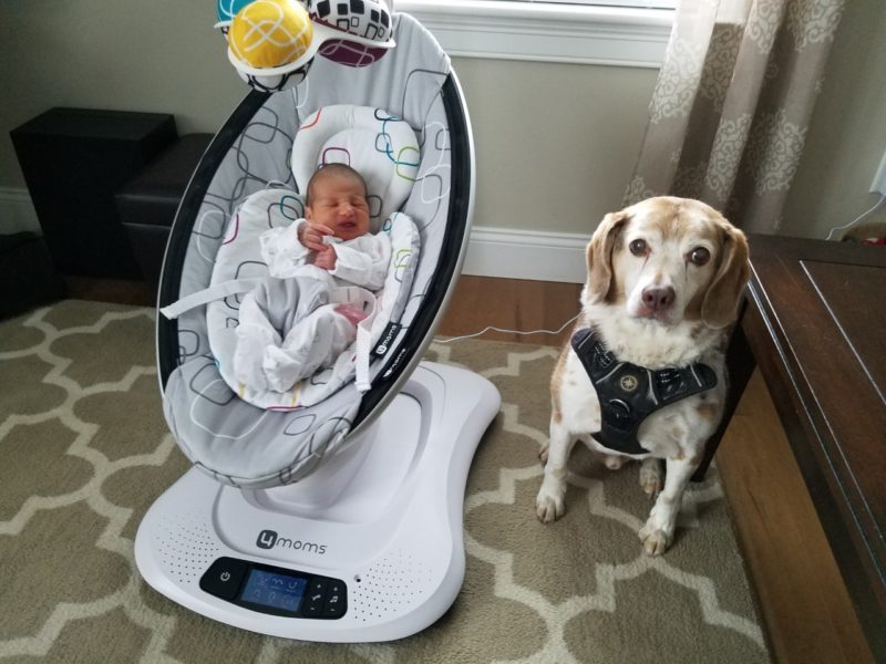 “10 years ago, my now-husband adopted Hunter from the New Hampshire SPCA, I was lucky enough to find them and join their family years later, and last week Hunter became a big brother! Hunter makes our hearts melt with how curious he becomes when his sister makes noises, and he brightens our days of social distancing by being the good, cuddly boy he is!”