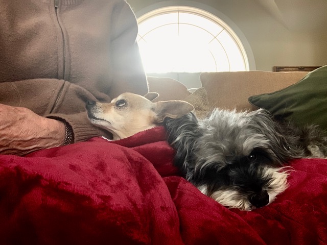 They are truly calming and comforting and keep me going with a purpose . Besides daily grooming, feeding, and petting they are enjoying long walks often 3 times a day! I have to laugh when we return home as they crash on the couch exhausted but soon are ready for more! I am In my mid 70’s , the vulnerable age for Corona, keeping me much closer to home than I choose to be!