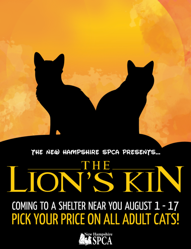 This Summer, the Circle of Love starts with YOU! Adopt a big cat from the New Hampshire SPCA and you can choose your adoption fee through August 17th. ( adult cats only)