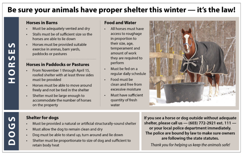 - Give Me Shelter: We don’t recommend keeping any pet outside for long periods of time, but if you are unable to keep your dog inside during cold weather, provide him/her with a warm, solid shelter against wind. Make sure that they have unlimited access to fresh, non-frozen water (by changing the water frequently or using a pet-safe, heated water bowl). The floor of the shelter should be off the ground (to minimize heat loss into the ground) and the bedding should be thick, dry and changed regularly to provide a warm, dry environment.